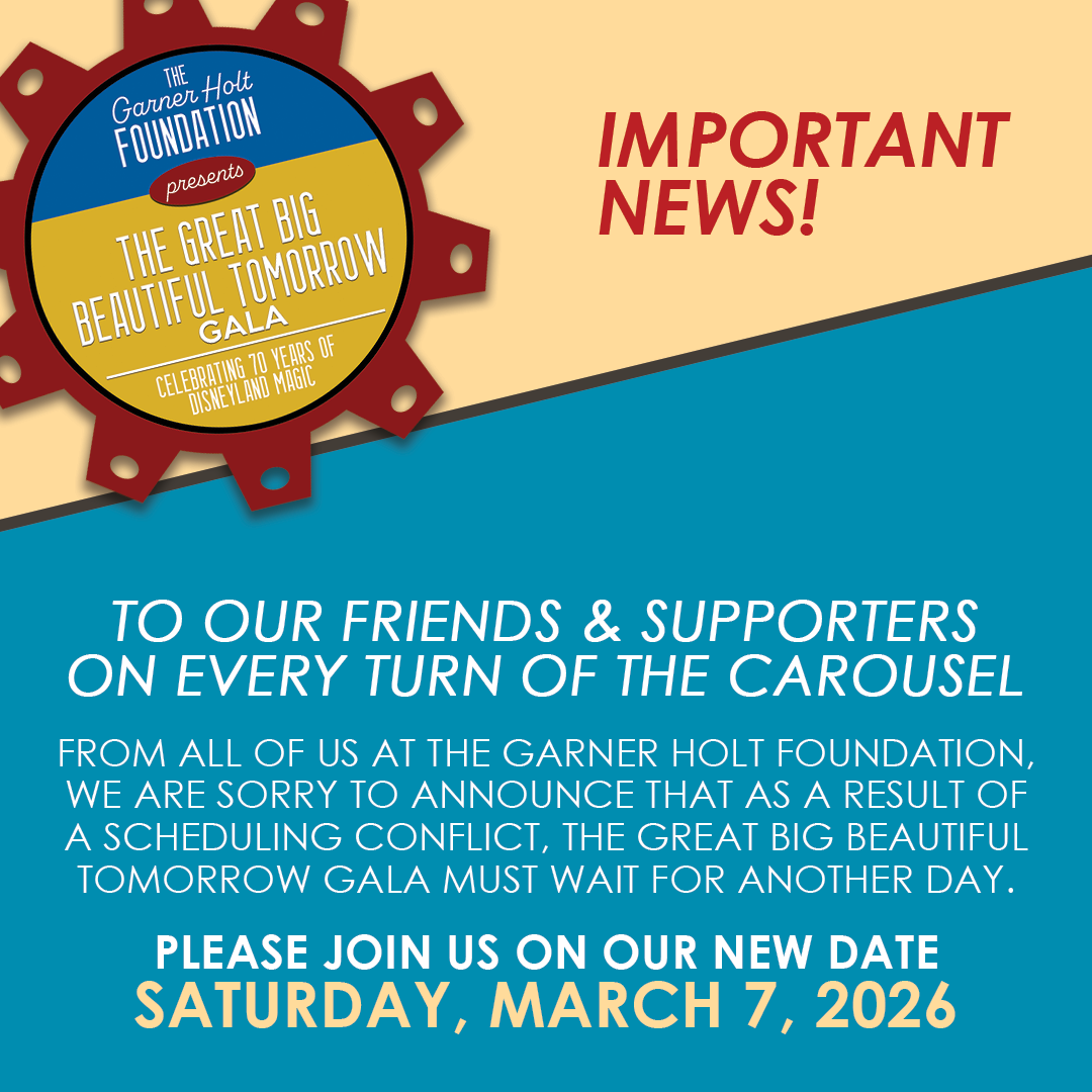 Whichever admission you choose, one thing’s for certain…there’s a great big beautiful tomorrow…shining at the end of every day…there’s a great big beautiful tomorrow…just a dream away! We’re looking forward to seeing you at this night of celebrating imagination, innovation, and inspiration at the Garner Holt Foundation. This private event will sell out. Secure your spot and join us – we can’t wait to see you there!
